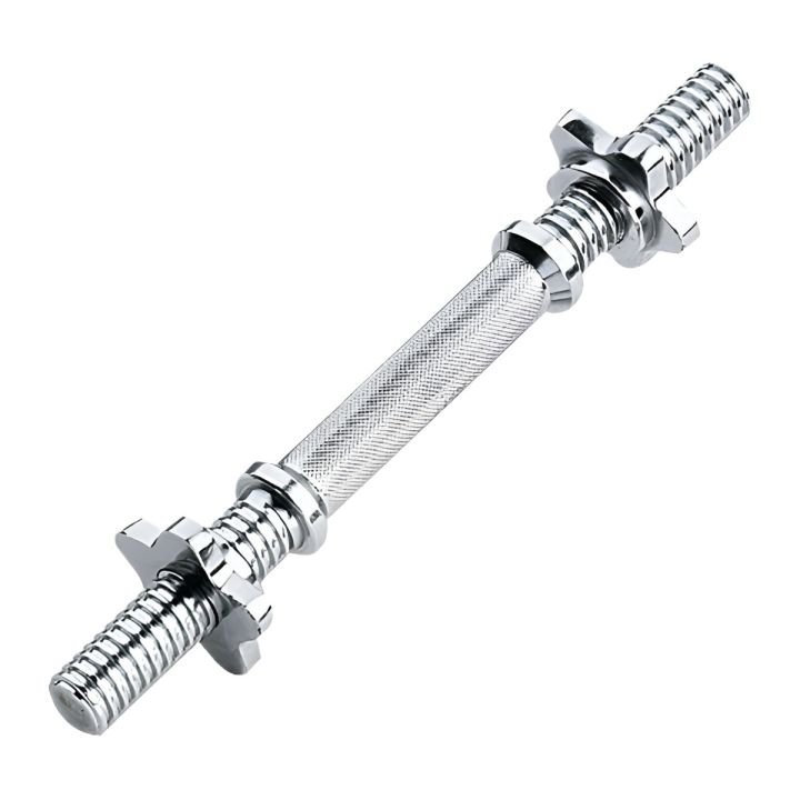 12 Inch Dumbbell Bar Silver – Steel Dumbbell Rod with Spin Lock for Weight Lifting Gym Exercise